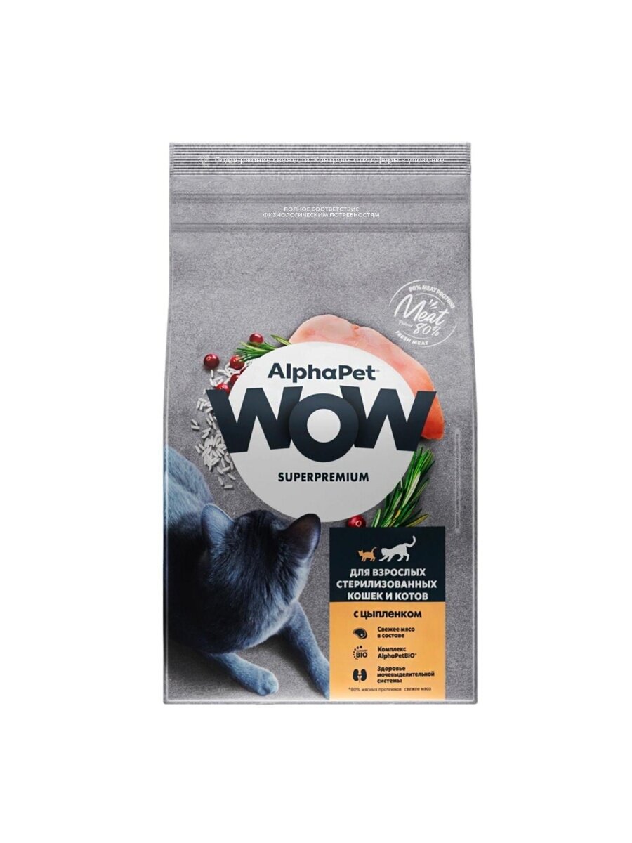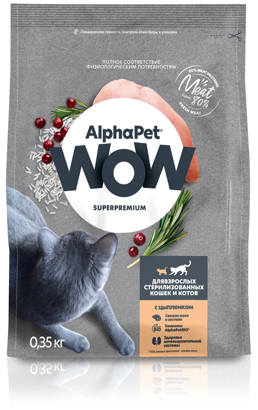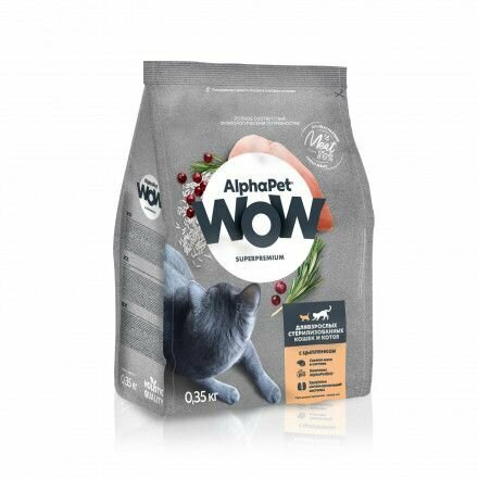 Корм сухой Alphapet WOW Superpremium с цыпленком для взрослых стерилизованных кошек и котов, 350 г