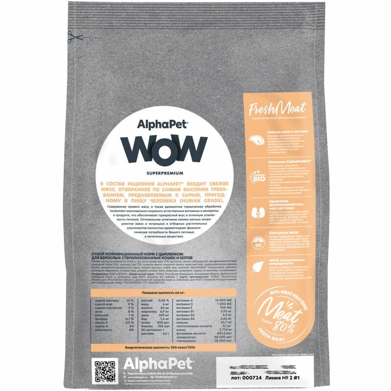 ALPHAPET WOW SUPERPREMIUM 350 гр сухой корм для взрослых стерилизованных кошек и котов c цыпленком 1