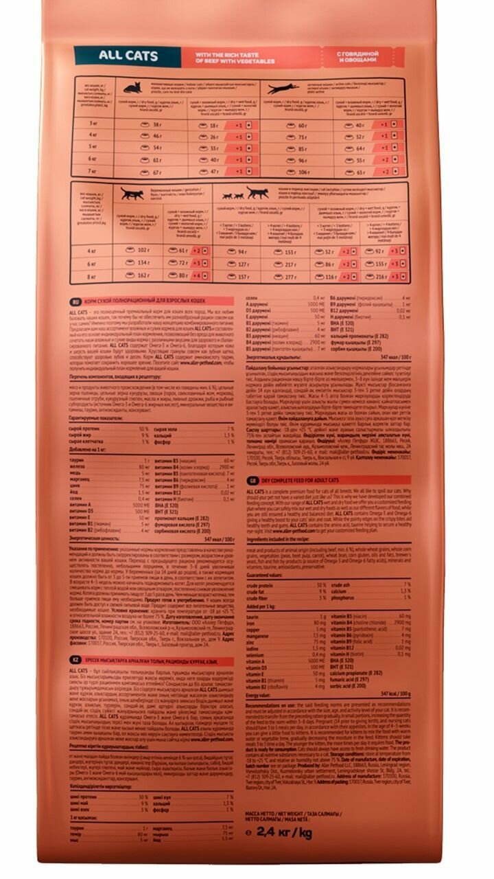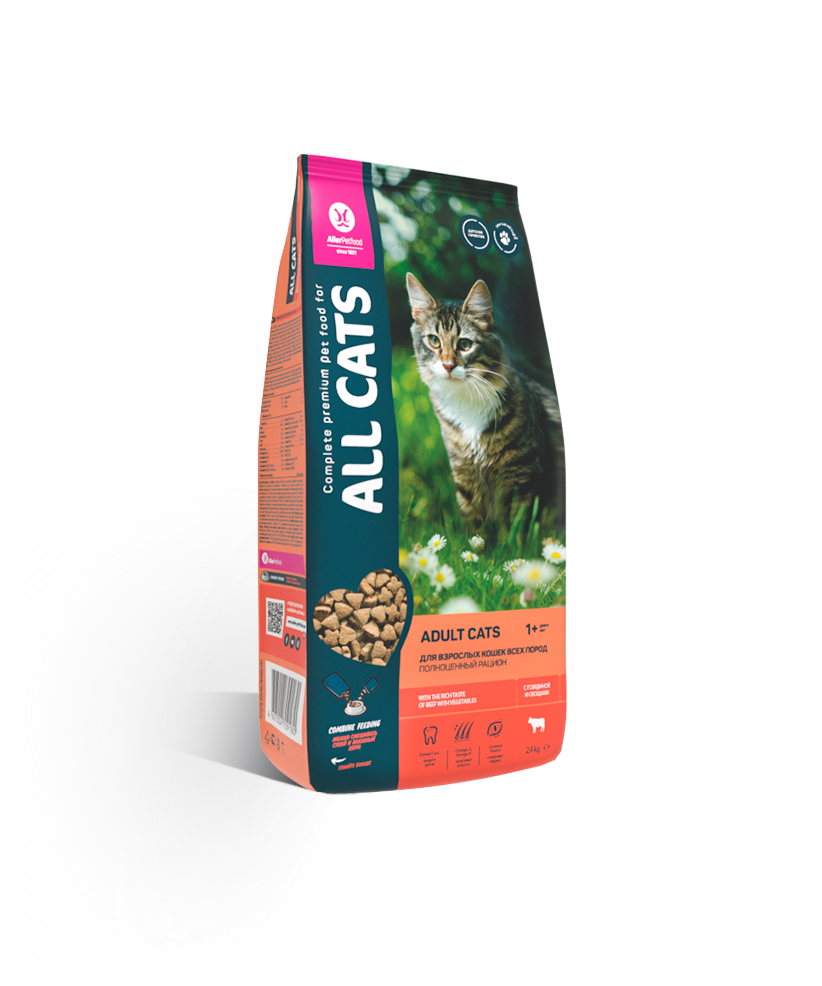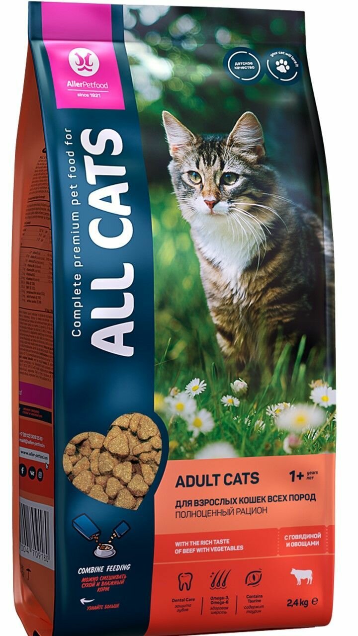 Сухой корм 2,4 кг для взрослых кошек ALL CATS говядина с овощами полнорационный/Аллер Петфуд