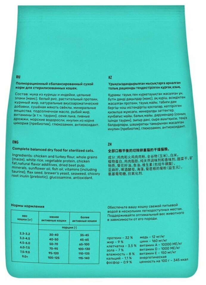 | Особые потребности | для стерилизованных/кастрированных / Кастрированным и стерилизованным |