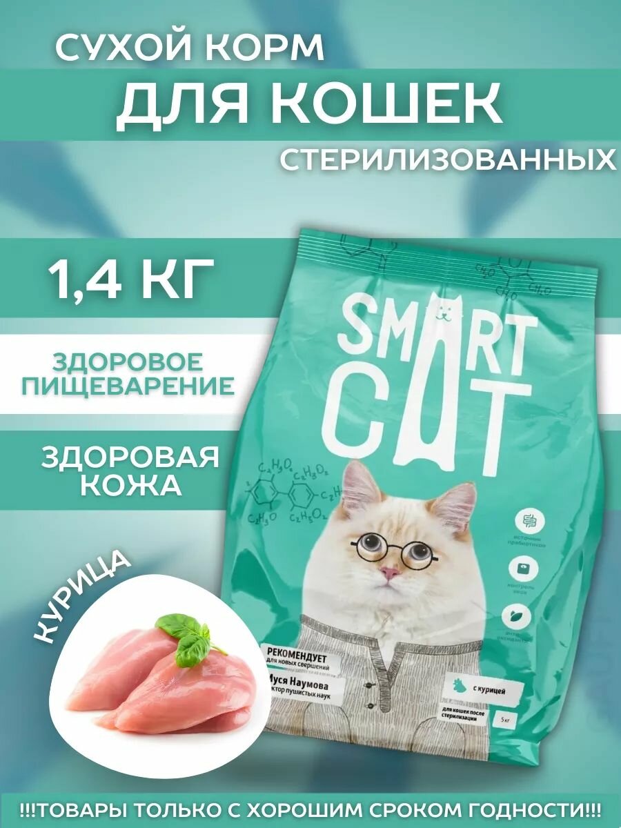SMART CAT для взрослых кастрированных котов и стерилизованных кошек с курицей (1,4 кг)