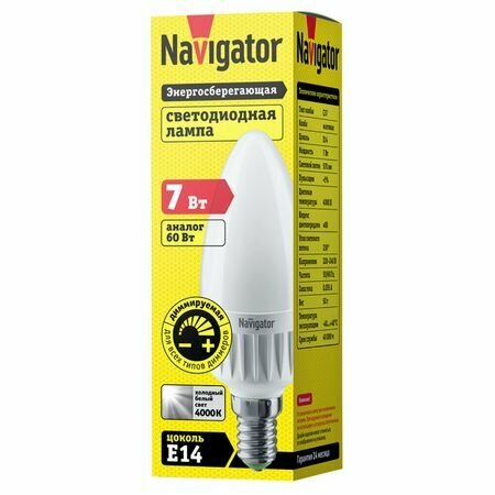 Ниже Вы можете прочитать отзывы на Navigator Лампа NLL-C37-7-230-4K-E14-FR-DIMM 61380, ознакомится с подробными характеристиками, посмотреть интересные обзоры и фотографии на Navigator Лампа NLL-C37-7-230-4K-E14-FR-DIMM 61380.