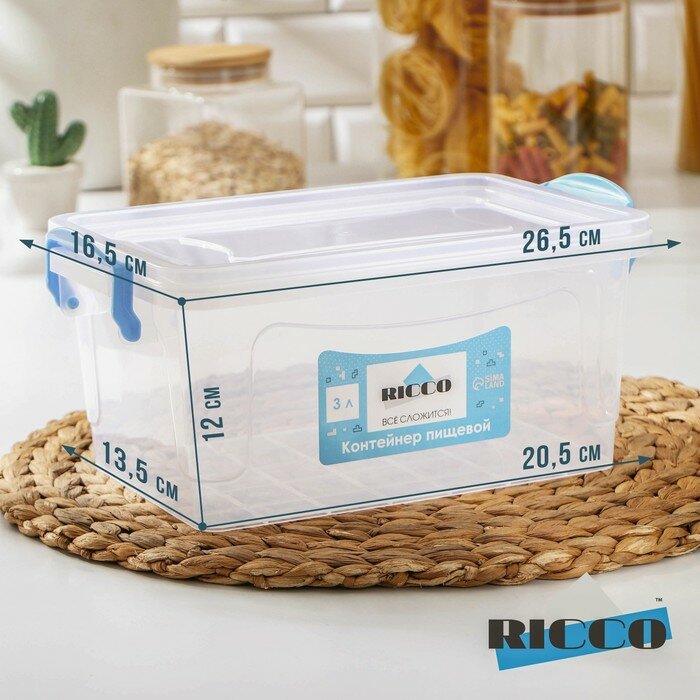 Контейнер пищевой RICCO, 3 л, 28×16×12 см, прямоугольный, цвет прозрачный, голубой интересное:
