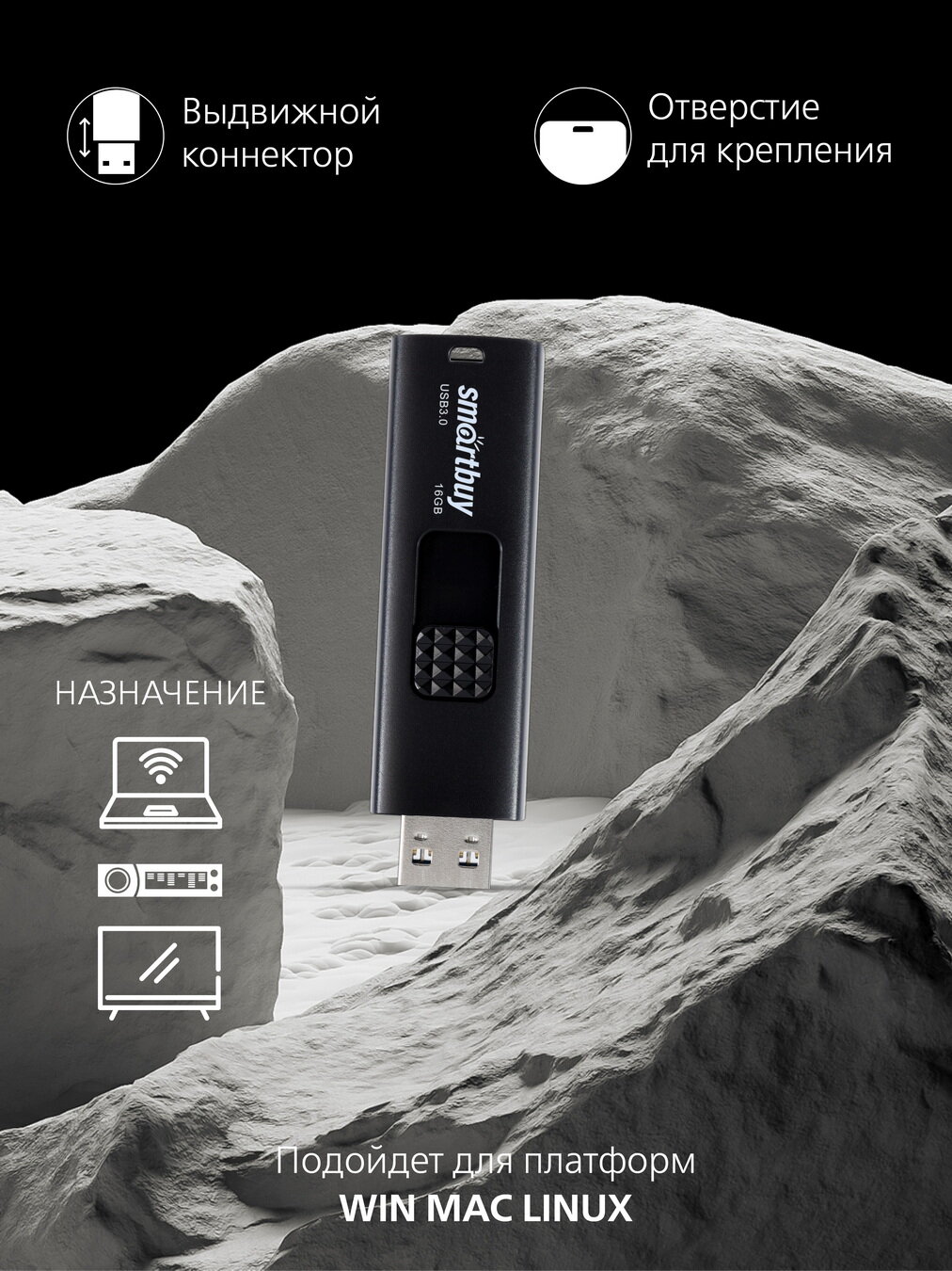 Флэш-накопитель USB SMARTBUY UFD 3.0/3.1, 16GB, Fashion Black черный (SB016GB3FSK)