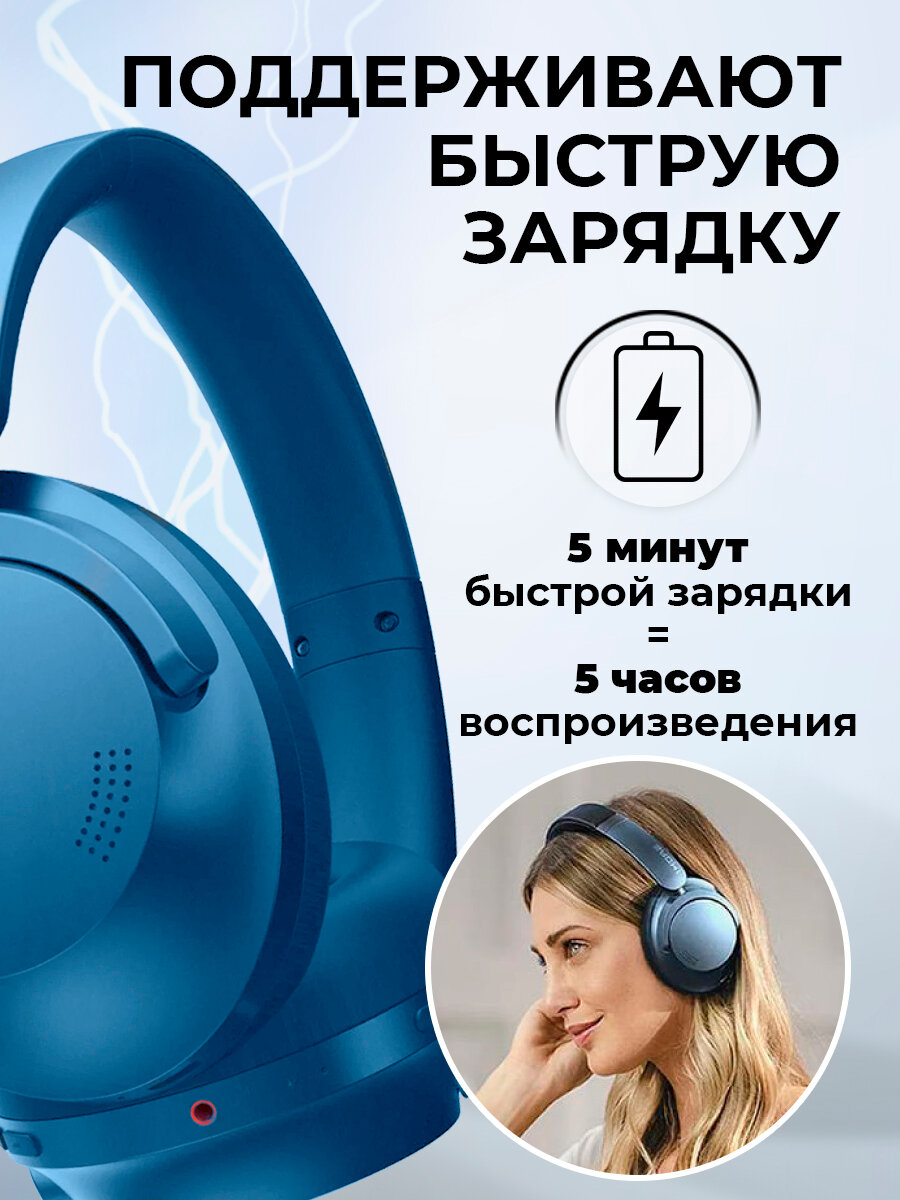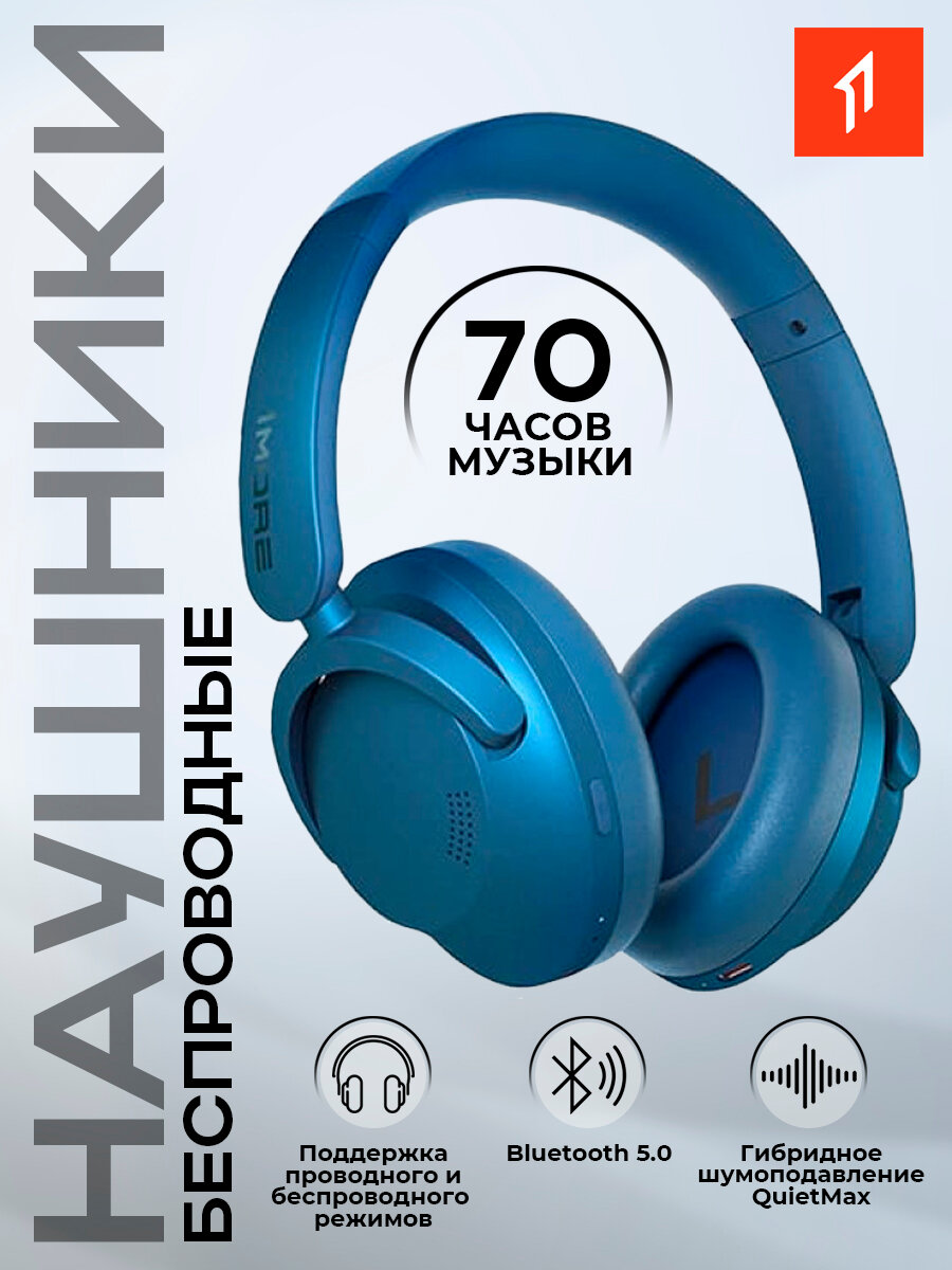 Беспроводные наушники 1More HC905, синий, Bluetooth, 20 часов работы, сенсорное управление, встроенный микрофон