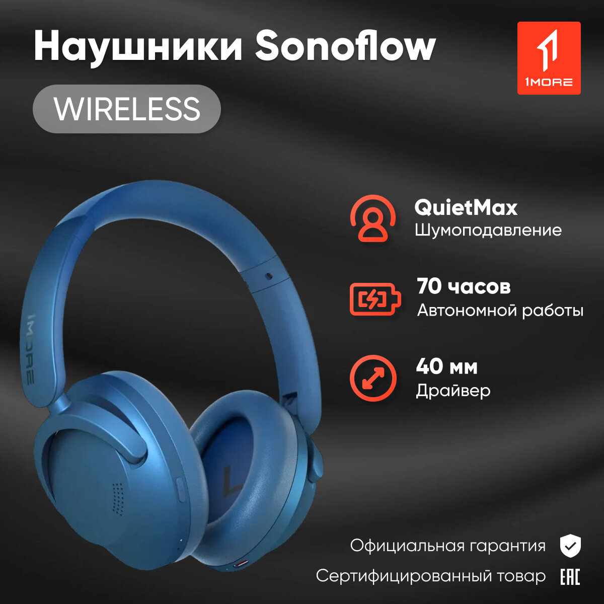 Беспроводные наушники 1MORE "Sonoflow Pro", ANC, накладные, с шумоподавлением