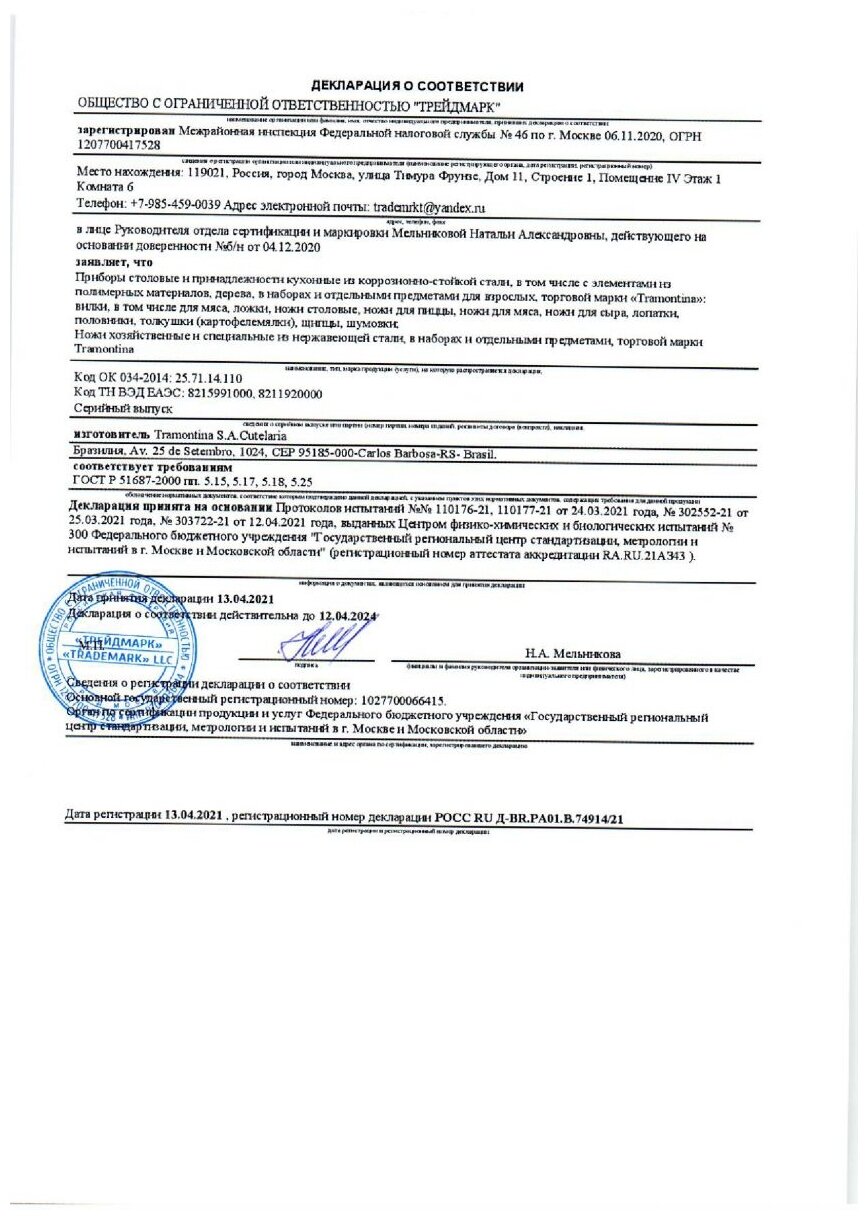 | Отзыв: | Ножи Tramontina не первое десятилетие славятся отличным сочетанием цена/качество. Этот не стал исключением: отличный нож за малые деньги. Покупал в отпуске на кухню матери — недавно разговаривали, благодарила за ножи. |