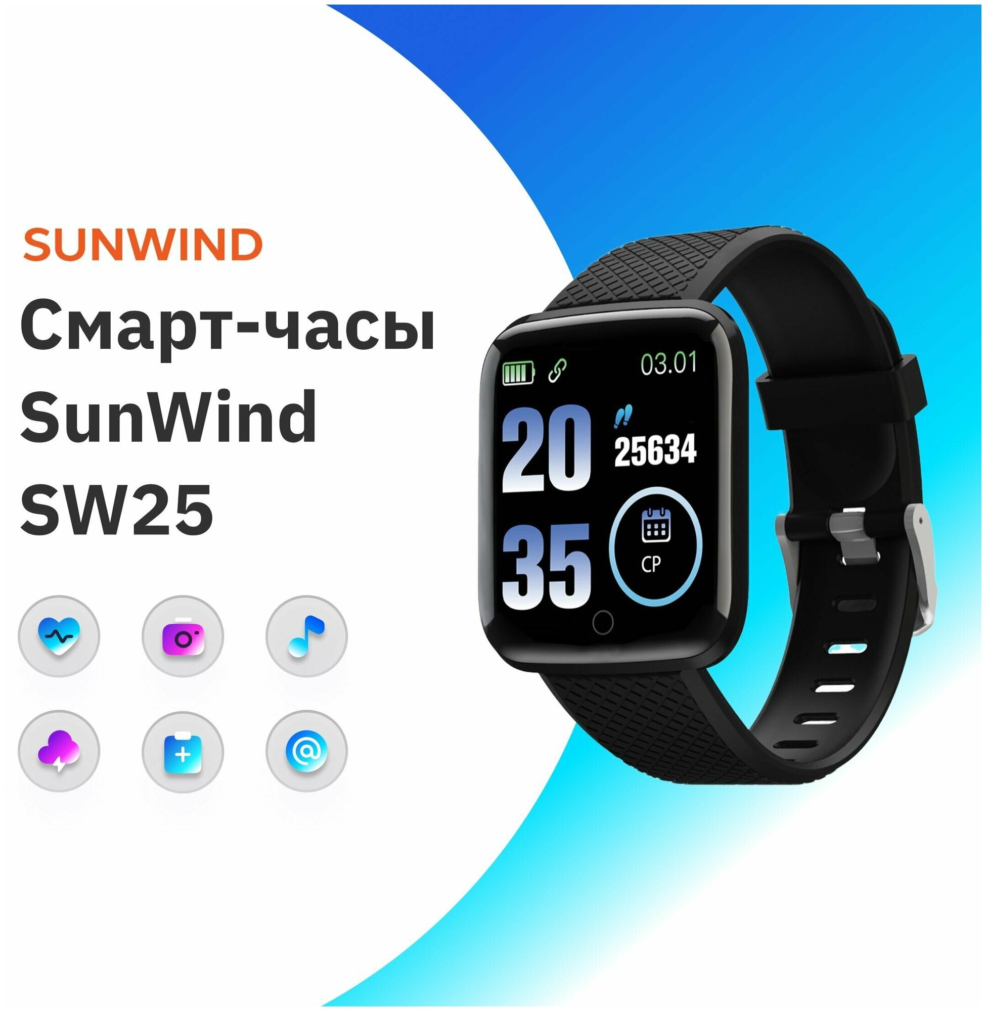 Смарт-часы SunWind SW25, 1.3", черный/черный [sw25b]