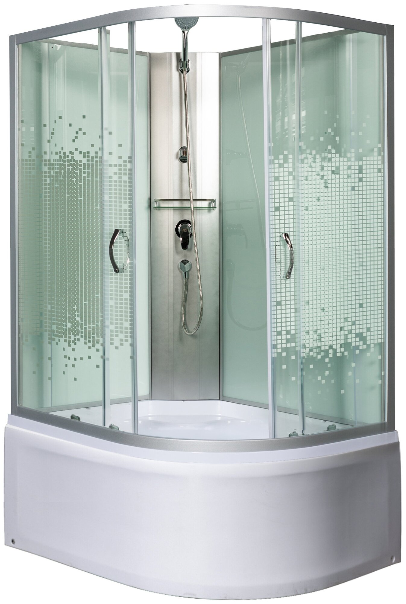 Душевая кабина Мономах 10000005831 без крыши , профиль хром , стекло прозрачное с рисунком мозаика