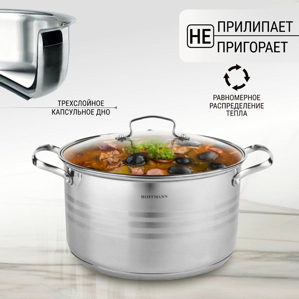 Кастрюля HOFFMANN, Нержавеющая сталь, Закаленное стекло, 9,5 л