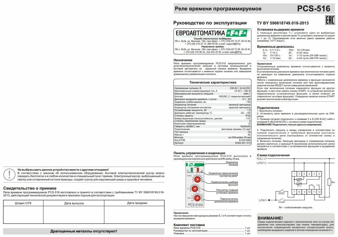 СохранитьРеле времени PCS-516 (многофункц. (вход: START/RESET) 230В 8А 1перекл. IP20 монтаж на DIN-рейке)(аналог РВО-1М) F&F EA02.001.013 (2шт.в упак.) интересное: