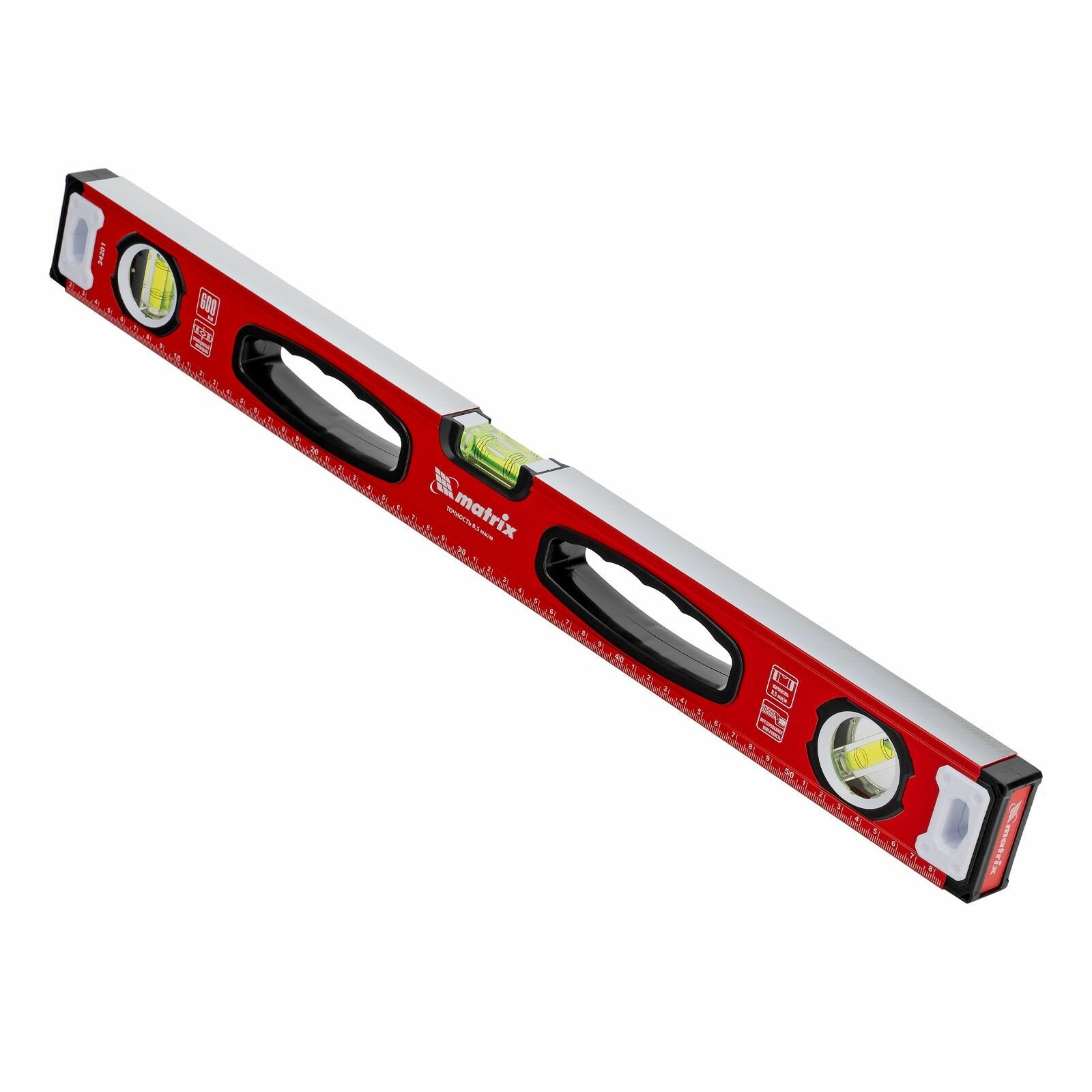 Уровень алюминиевый, фрезерованный, 3 глазка, рукоятки, 1000 мм, MATRIX 34203