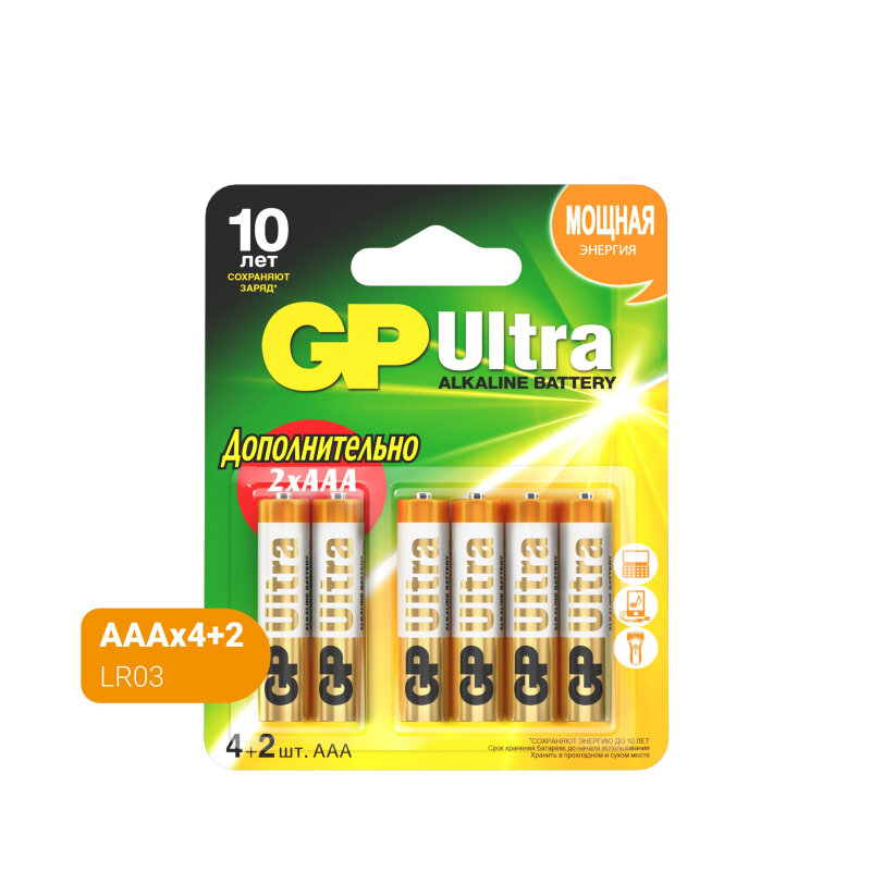 Батарейка GP Ultra AAА GPPCA24AU019 алкалин. бл/6шт интересное: