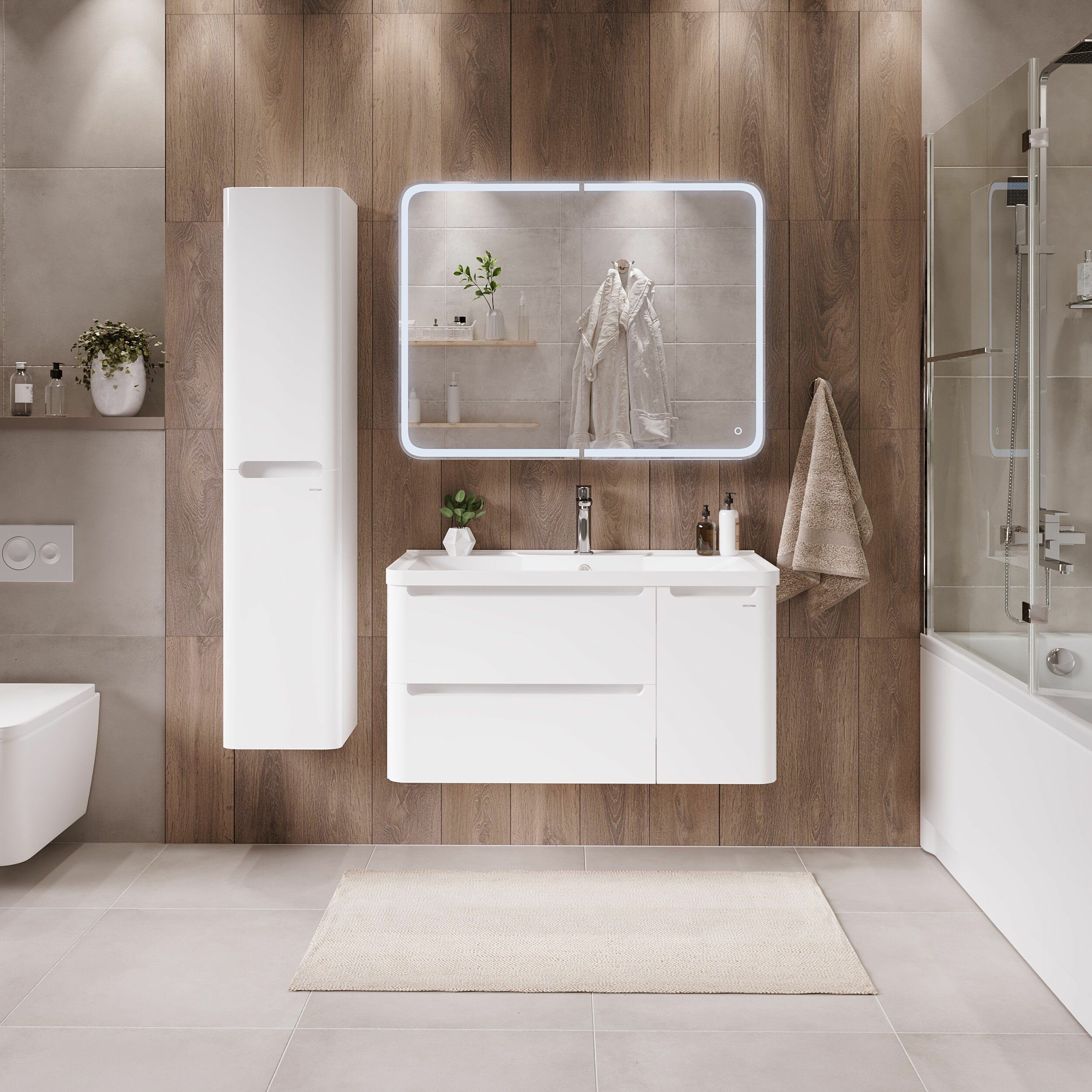 Тумба под раковину подвесная с 2 ящиками Grossman АДЕЛЬ-90 см белая. интересное: