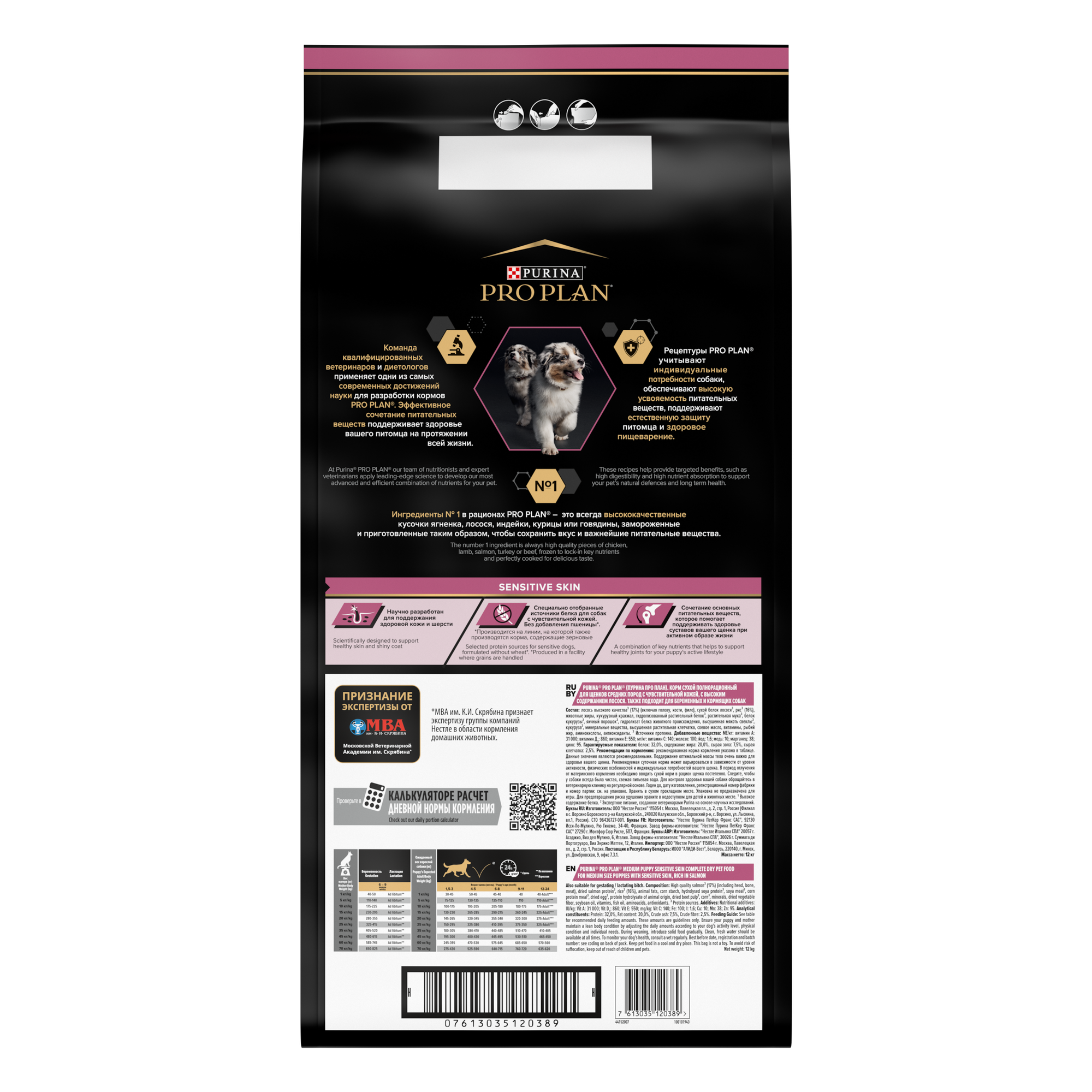 Pro Plan Medium Puppy Sensitive Skin корм для щенков средних пород с чувствительной кожей Лосось, 12 кг.