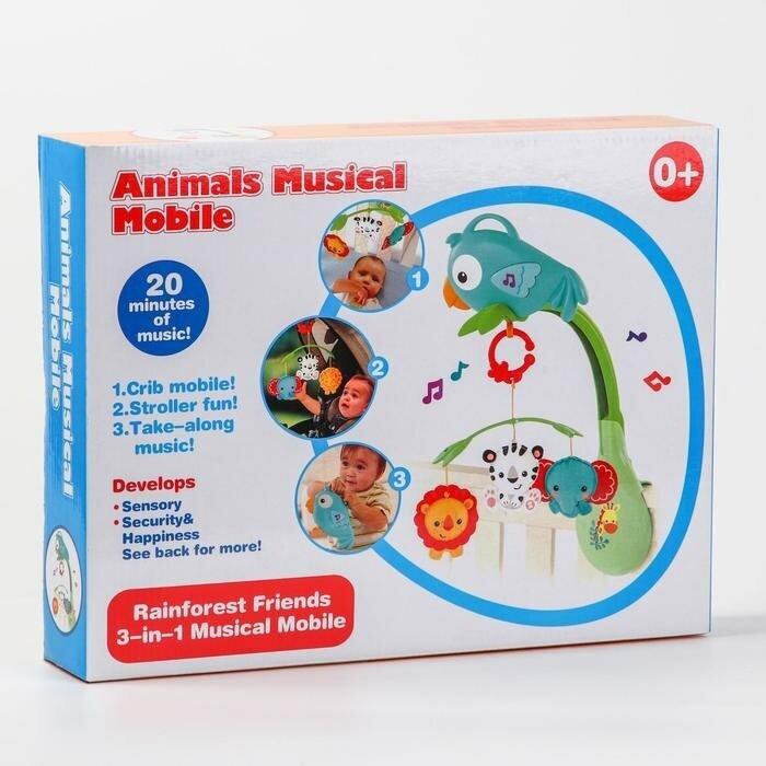 Купить --- Мобиль музыкальный "Тропический лес. Попугайчик", 3 игр., на батарейках, съемный муз.блок