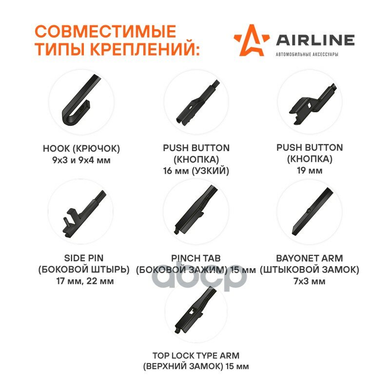 Щетка стеклоочистителя гибридная 380мм 3 адаптера AIRLINE арт. AWBH380 интересное: