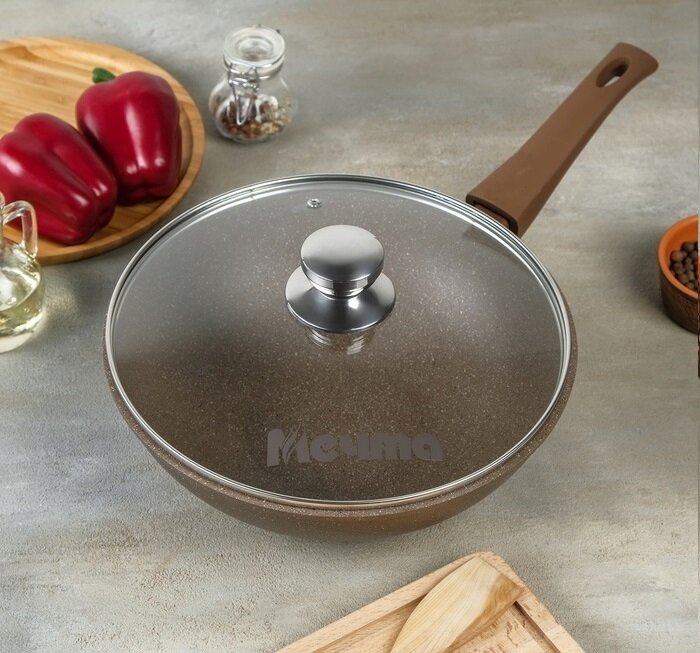 Купить Сковорода ВОК 28см Гранит brown с несъемной ручкой и стеклянной крышкой С78 806 .