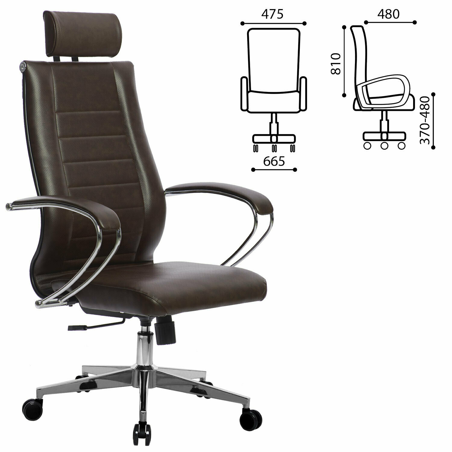 Кресло офисное метта "К-32" хром, экокожа, подголовник, сиденье и спинка мягкие, темно-коричневое