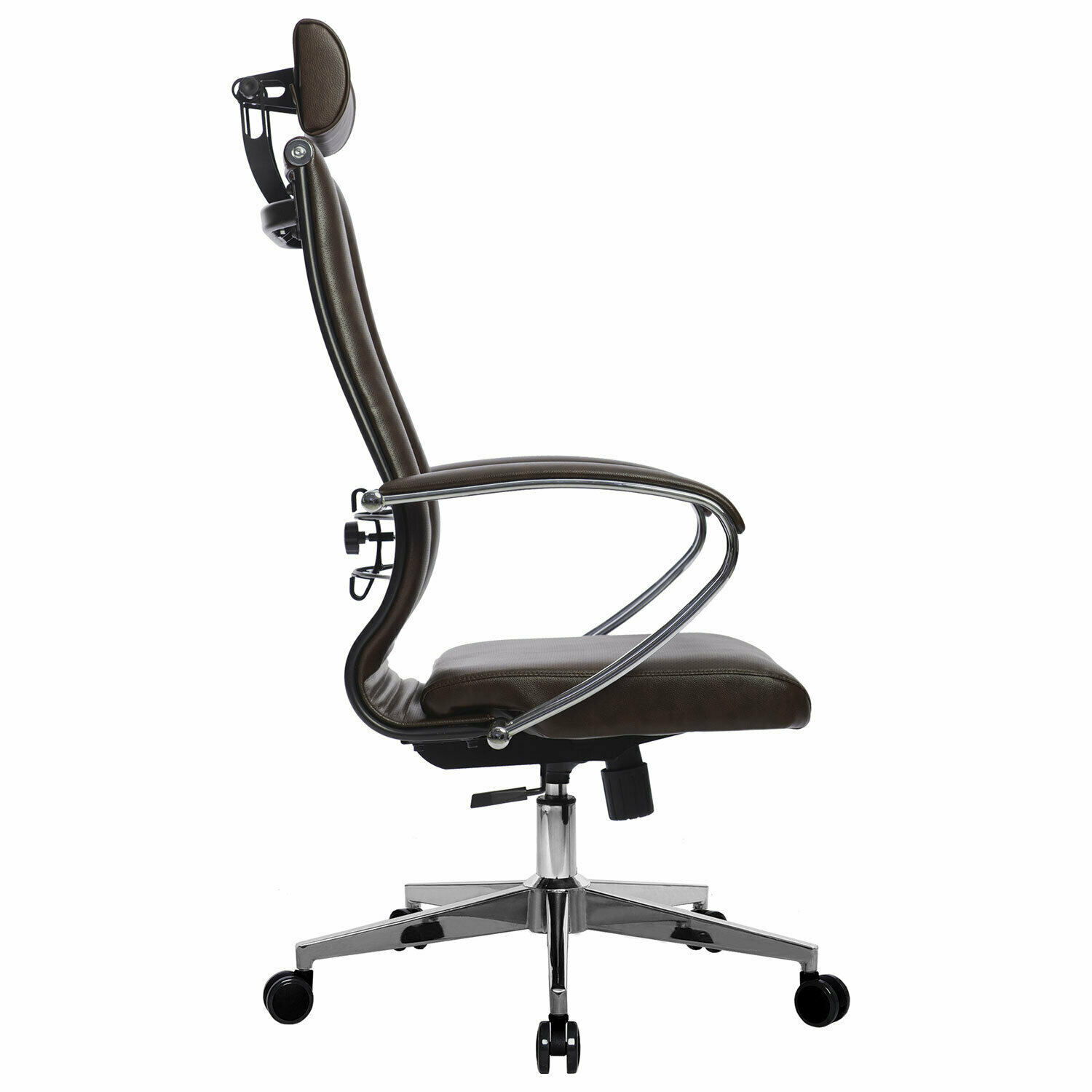 Купить Кресло офисное метта «К-32» хром, экокожа, подголовник, сиденье и спинка мягкие, темно-коричневое