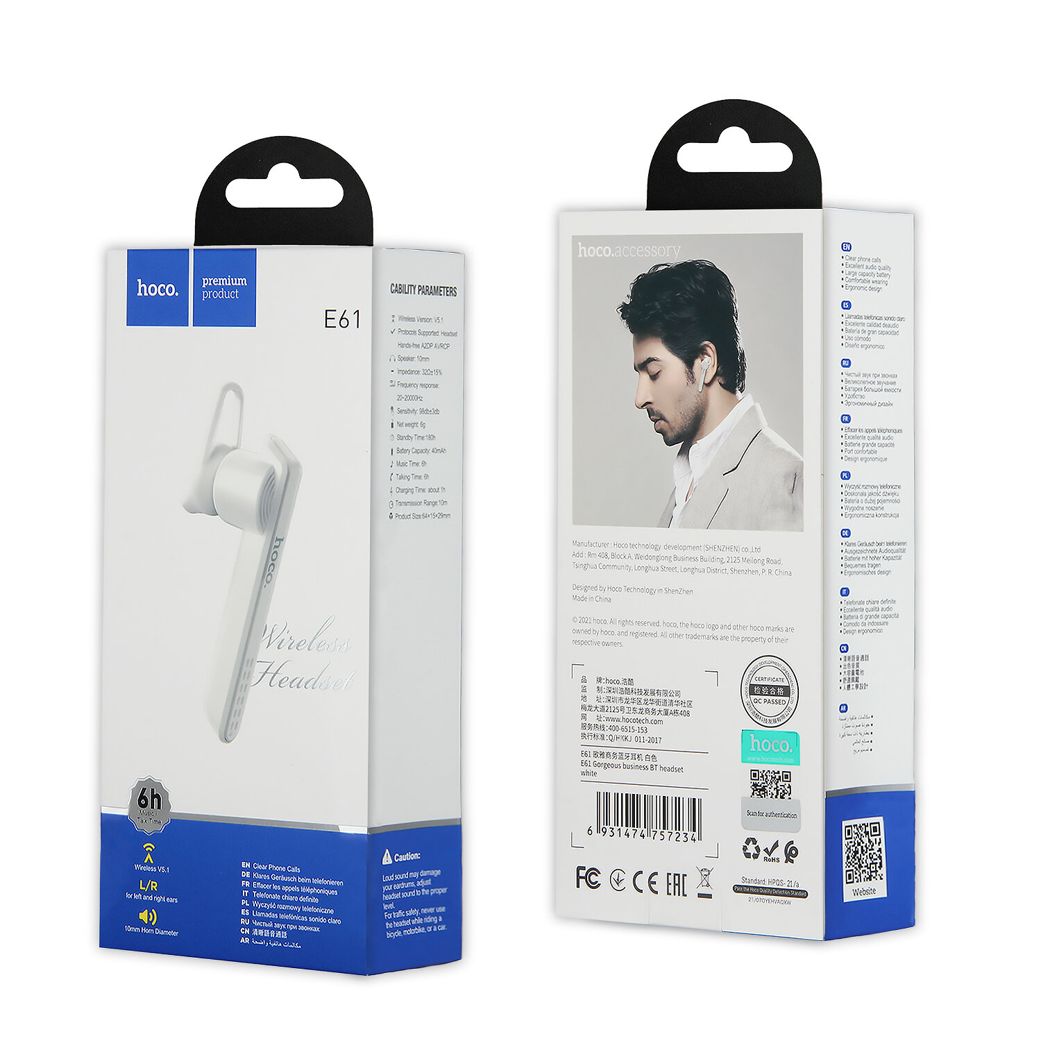Купить HOCO / E61 / Блютуз-гарнитура белая