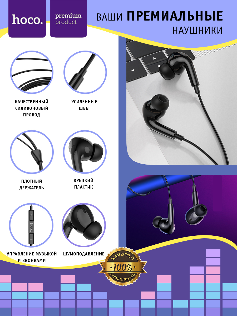 Проводные наушники M1 Pro, Type-C, HOCO, вакуумные с микрофоном, черные