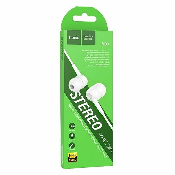 Проводные наушники вакуумные HOCO M99 Celestial, AUX Jack 3.5mm, 1.2 м, белый