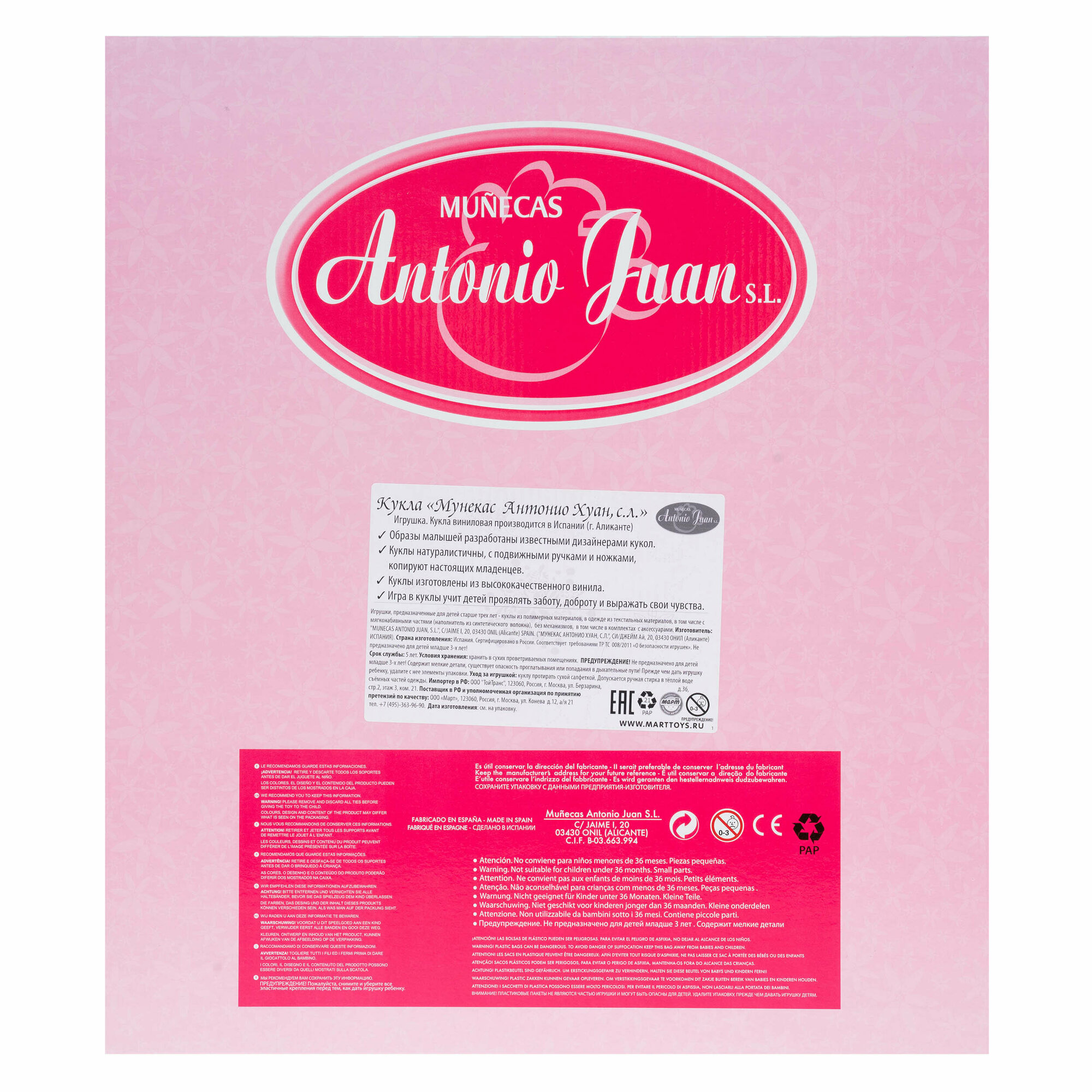 | Дополнительная информация | куклу протирать сухой салфеткой. Допускается ручная стирка в тёплой воде съёмных частей одежды |