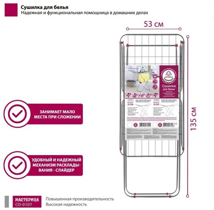 Ниже Вы можете прочитать отзывы на Сушилка для белья мастерица CD-0107, ознакомится с подробными характеристиками, посмотреть интересные обзоры и фотографии на Сушилка для белья мастерица CD-0107.