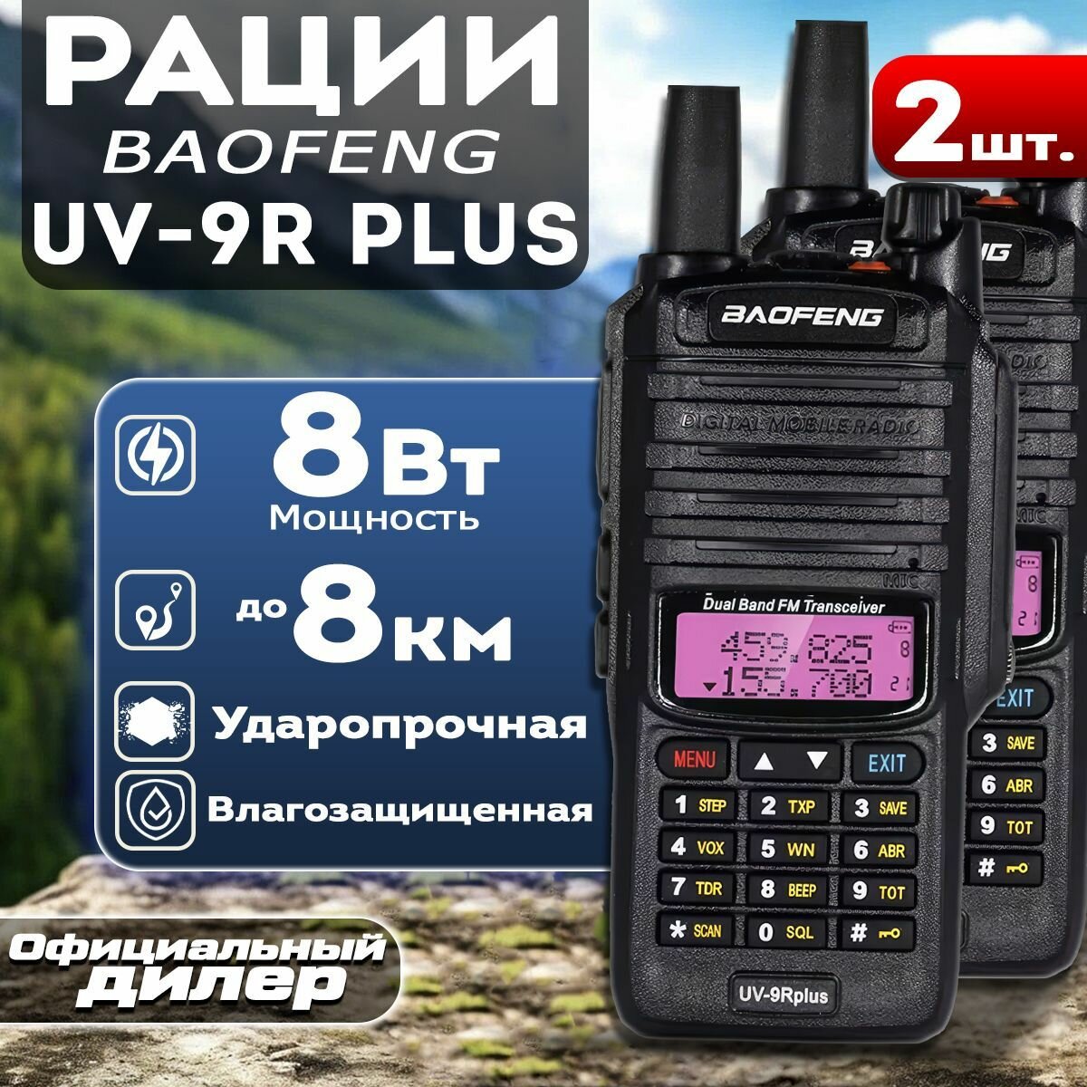 Комплект раций (радиостанций) Baofeng UV-9R PLUS 8W (2шт) влагозащита IP67