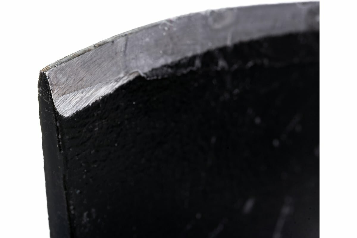 | Минусы: | Топор болтается на топорище, но не слетает. При этом насажен криво. Он не кованый, а просто штамповка. Отштампован криво - лезвие до 1 см поведено вбок от вертикальной оси головы. Заточка зубильная. Закалка плохая - режущая кромка легко стачивается личнЫм напильником. Учитывая стандартную твёрдость напильника в 54-55 HRC, предполагаю на режущей кромке твёрдость в 48-49 HRC. |