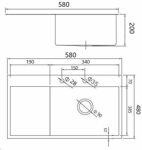 Кухонная мойка премиум 580*480 (1 мм) глубина 22см. нерж. сталь, чаша справа (K35848-R) Gerhans