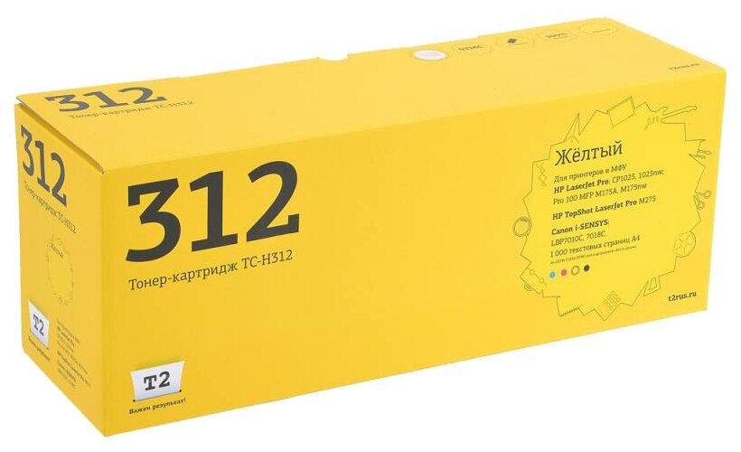 Ниже Вы можете прочитать отзывы на Картридж T2 CE312A/CF352A/729Y желтый совместимый с принтером HP (TC-H312), ознакомится с подробными характеристиками, посмотреть интересные обзоры и фотографии на Картридж T2 CE312A/CF352A/729Y желтый совместимый с принтером HP (TC-H312).