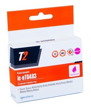 T2 Расходные материалы C13T048340 Картридж IC-ET0483 для Epson Stylus Photo R200 R300 RX500 RX600, пурпурный, с чипом