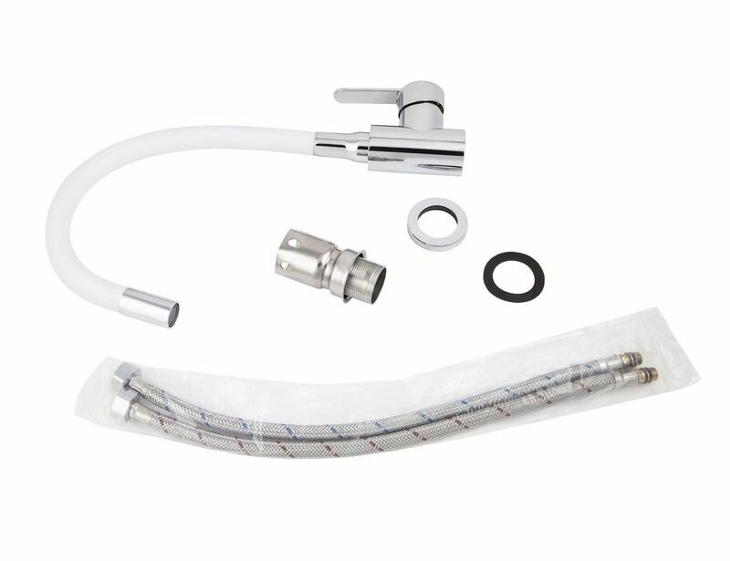 Смеситель для кухни VIKO V-4434 с белым гибким изливом O35 с гайкой