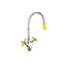 Смеситель кухня на гайке крест гибкий излив Силумин Желтый+Хром Accoona A4882H