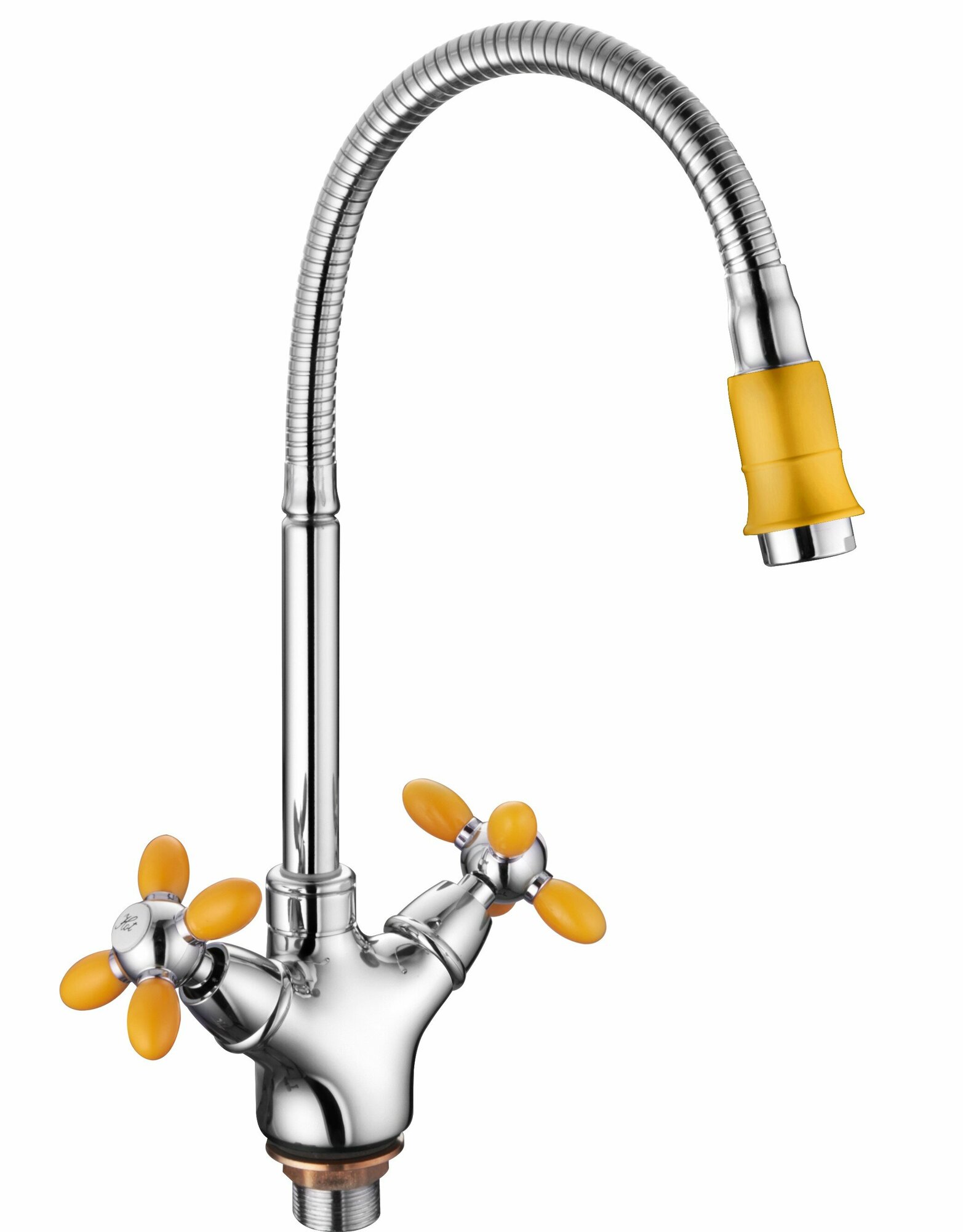 Смеситель для кухни A4882H, двухвентильный, с гибким изливом, силумин, желтый/хром