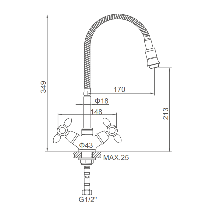 Смеситель кухня с гибким изливом на гайке (крест красный). Силумин, Accoona A4882N