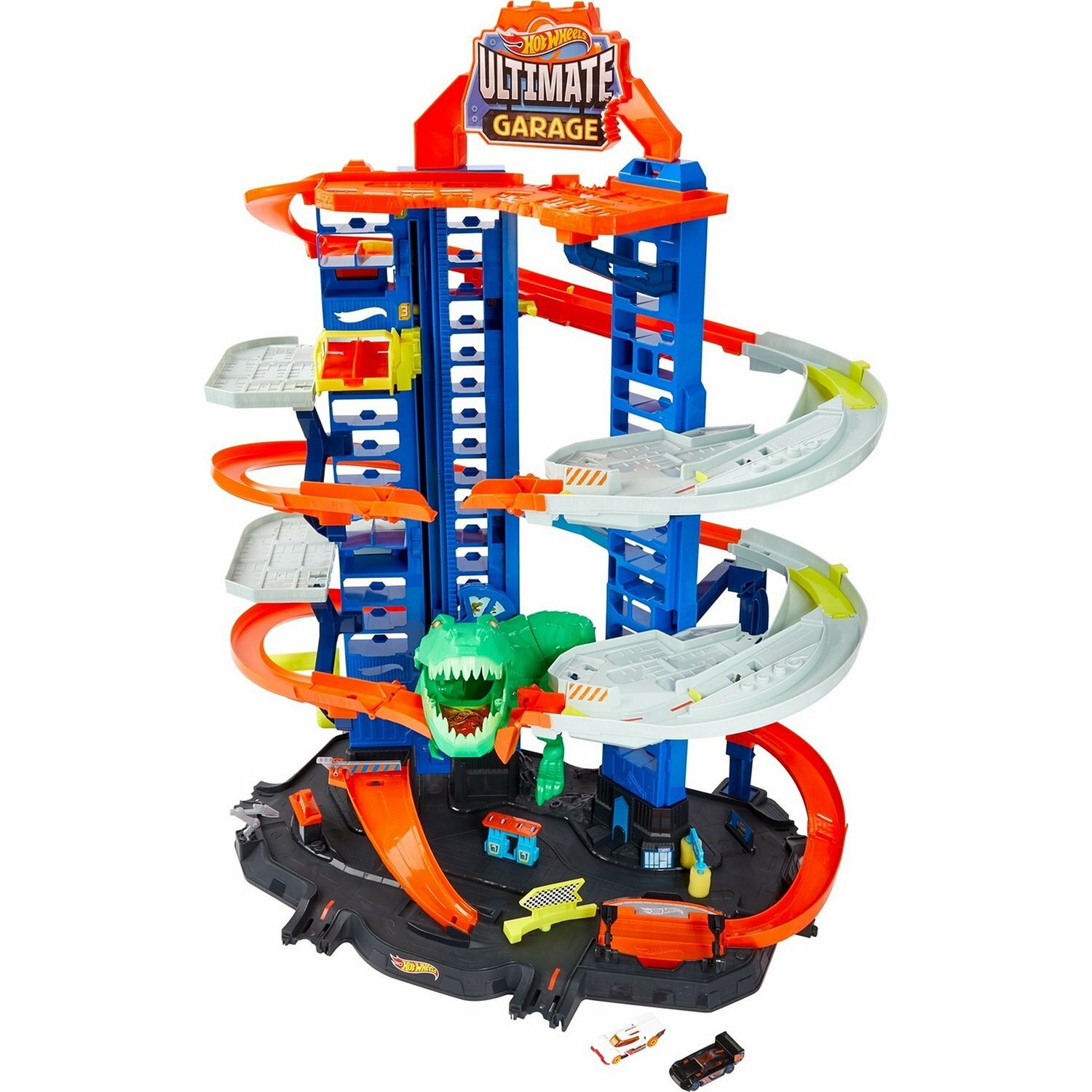 Hot Wheels Сити Невообразимый гараж с тиранозавром GJL14, серый/голубой/зеленый/оранжевый