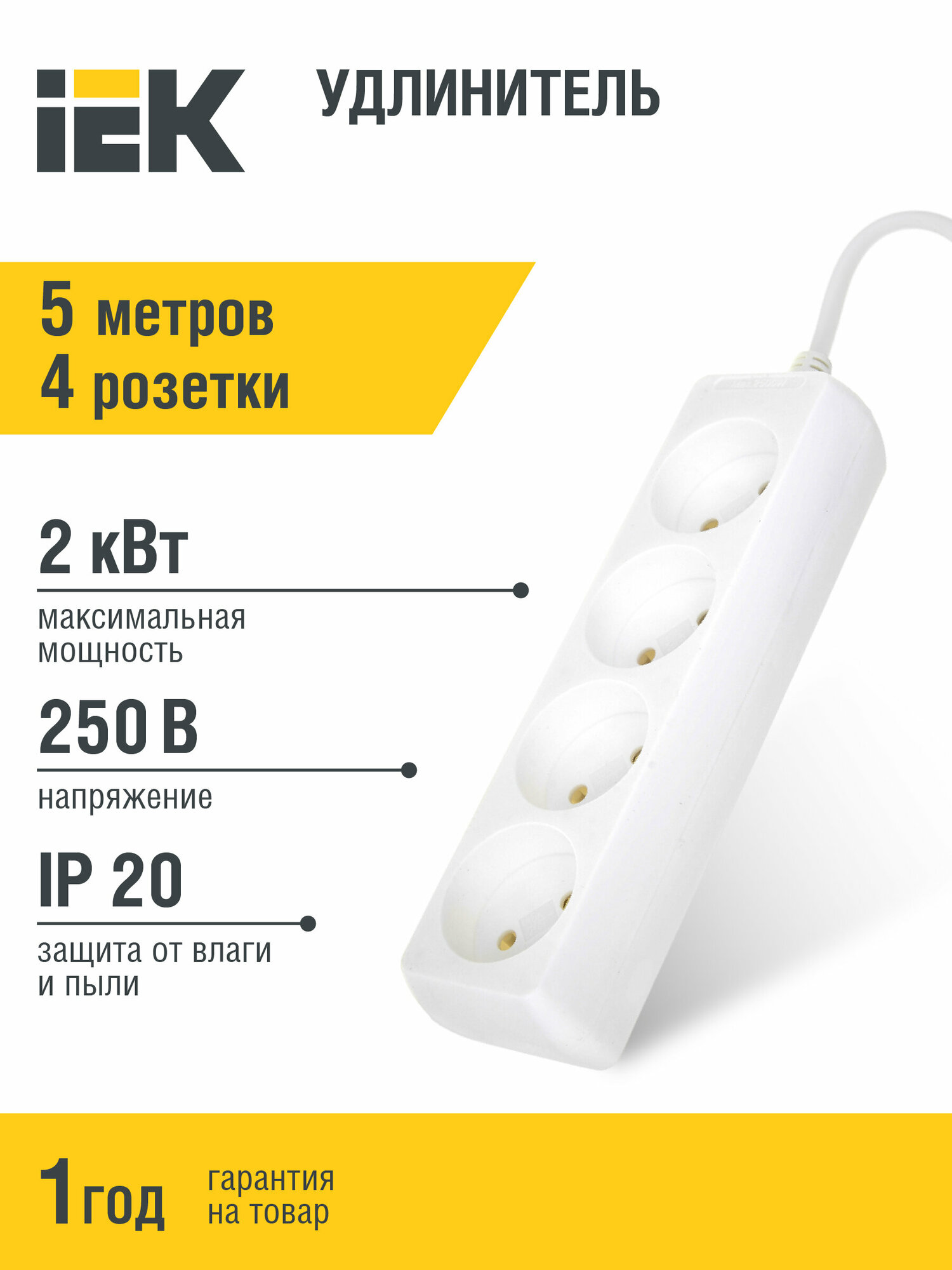 Удлинитель У4 4-местный, 5м, WYP10-06-04-05-N | код. WYP10-06-04-05-N | IEK ( 1шт. )