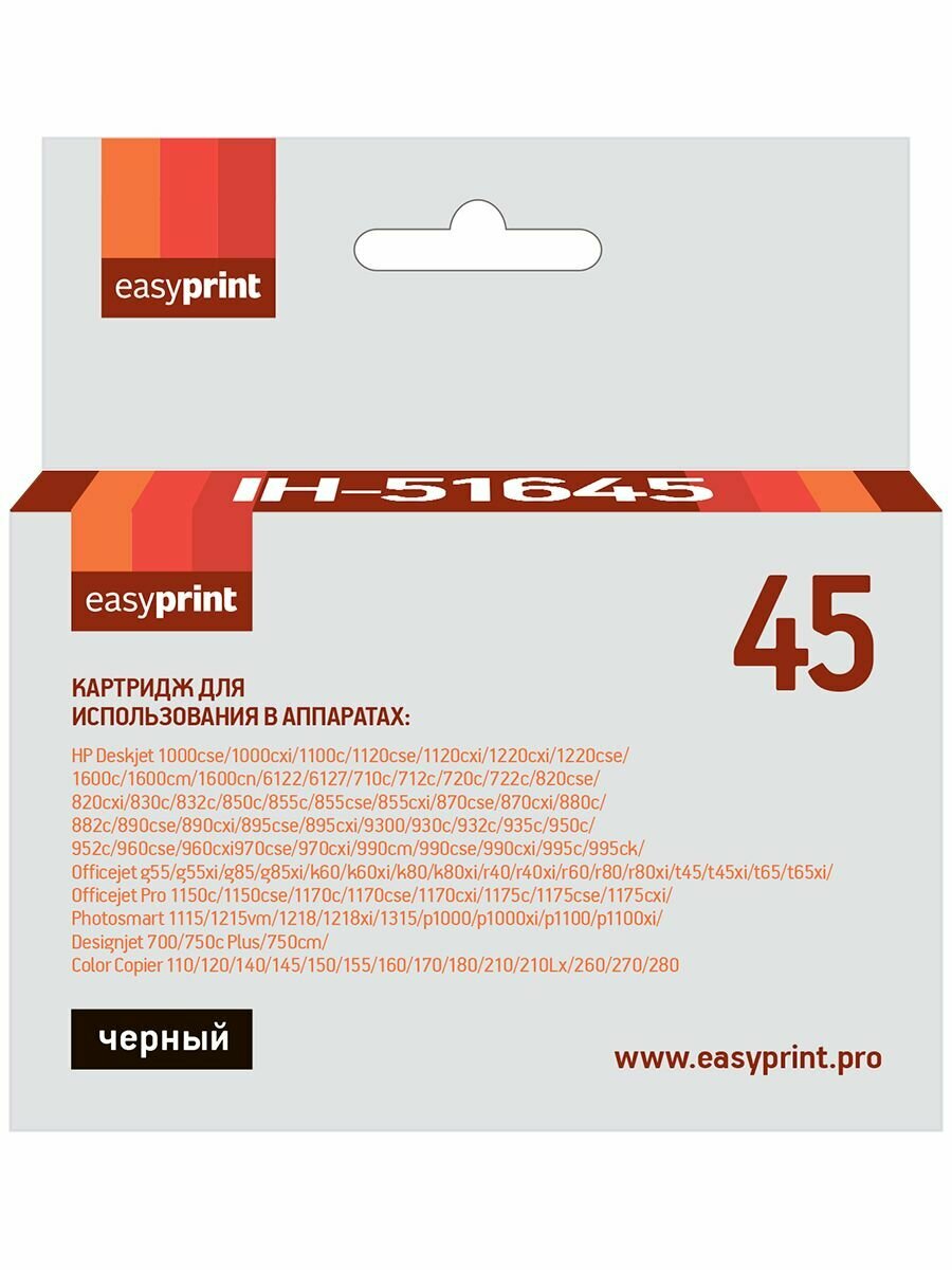 Картридж EasyPrint IH-51645 №45 для HP Deskjet 930/940/950/960/970/990/995/1220/Officejet 5110/g55/g85/g95/k60/k80/v40/Photosmart 1115/1215/1315/p1000