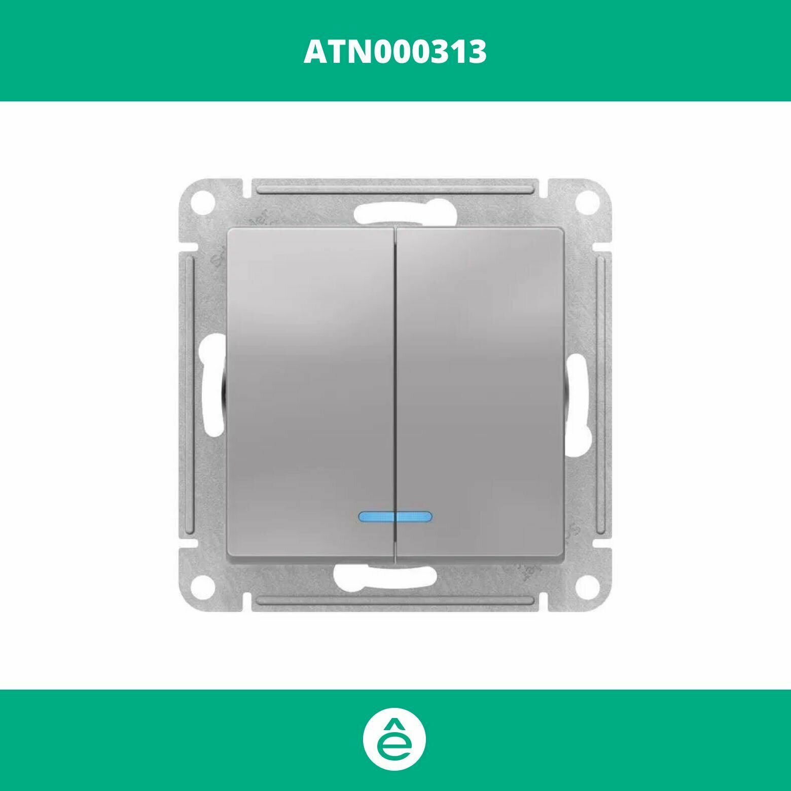 Выключатель 2-клавишный ATLASDESIGN, с подсветкой, скрытый монтаж, алюминий | код. ATN000353 | Schneider Electric (9шт. в упак.)