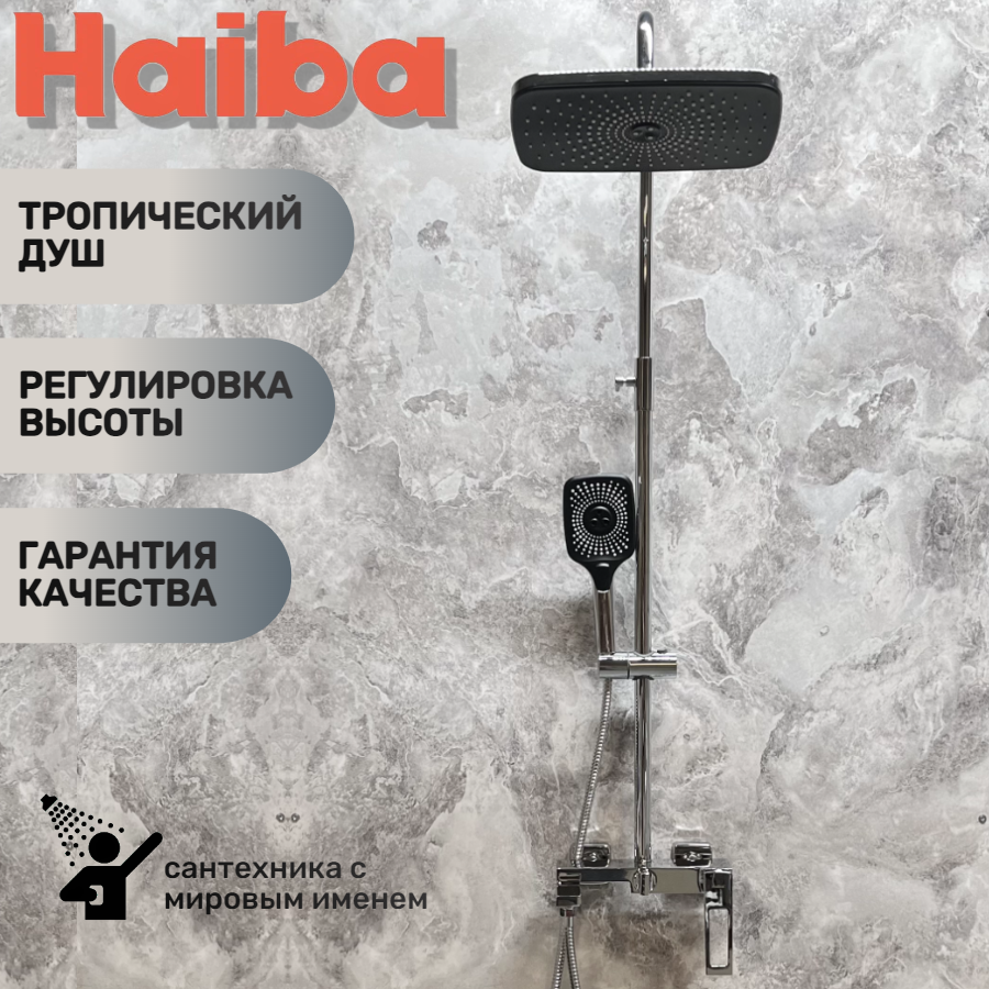 Душевая система, душевой гарнитур с верхним тропическим душем HAIBA HB24817 смесителем, ручной лейкой, хром, латунь.