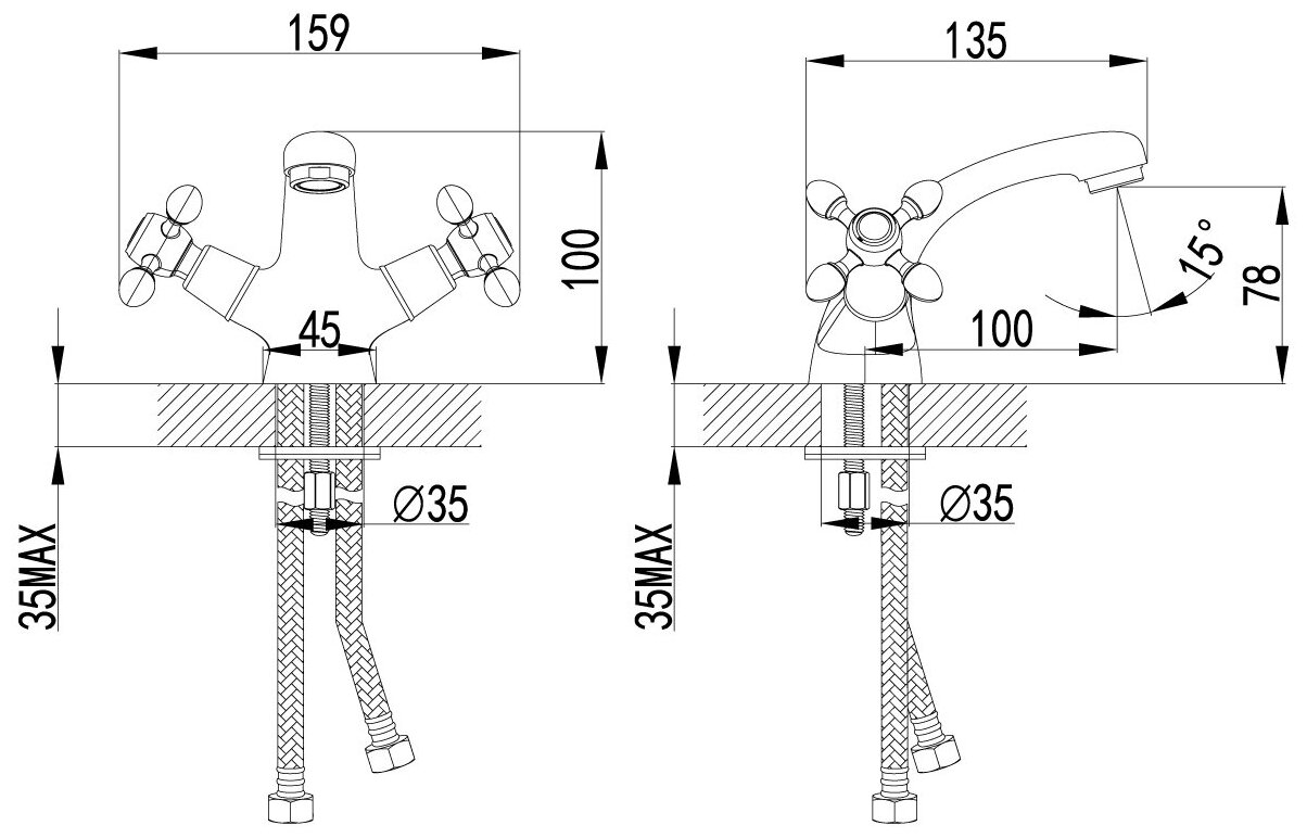 Вентильный смеситель для раковины, гибкая подводка 35см, хром (Lemark LM7606C) интересное: