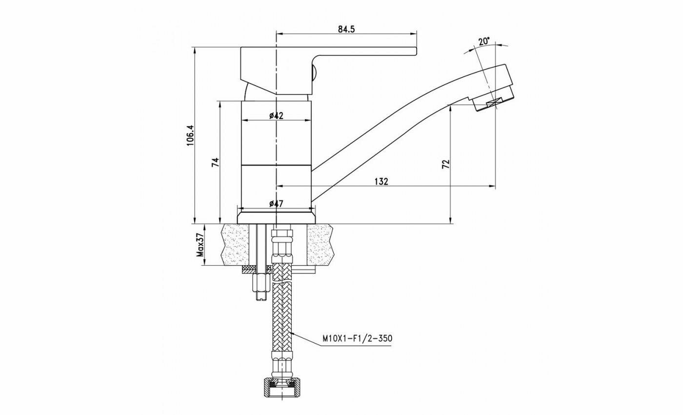 Купить Смеситель для раковины с коротким поворотным изливом, гибкая подводка 35см, хром (Lemark LM1507C)