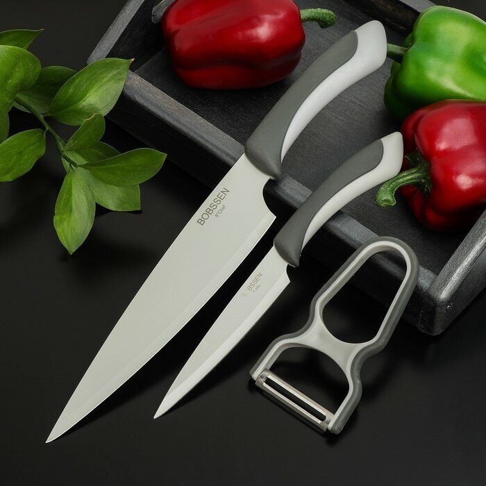 Набор ножей КНР Faded, 3 предмета ножи, овощечистка, серый интересное: