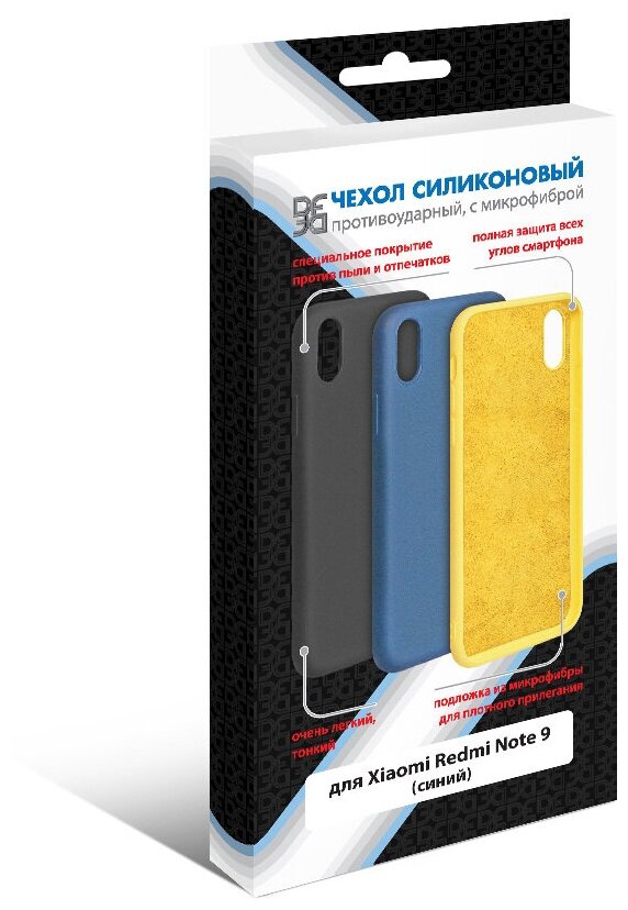 Чехол с микрофиброй DF для Redmi Note 9 Silicone Blue xiOriginal-11