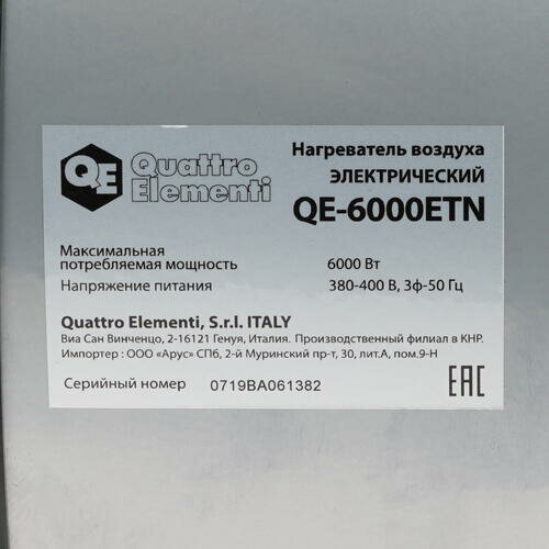 Нагреватель воздуха электрический QUATTRO ELEMENTI QE-6000 ETN