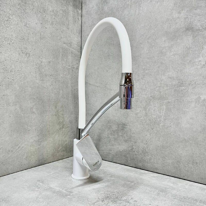 Смеситель Haiba HB72505-8 для кухни с гибким изливом, белый/хром