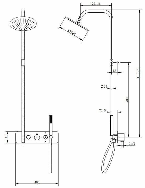 | Особенности | держатель душевой лейки / регулируемый верхний душ |